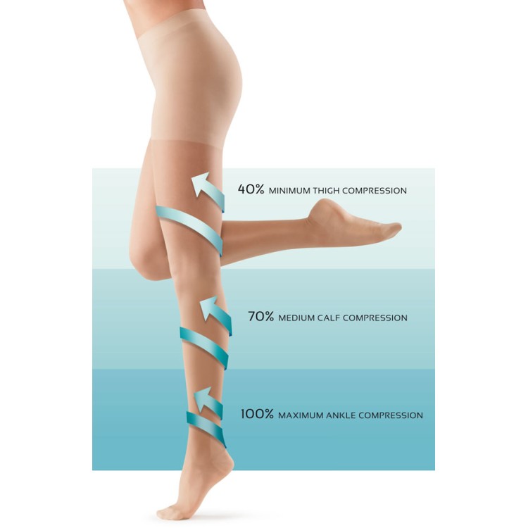 Strong compression level: 140 den - 15-21 mm/Hg at the ankle. Ideal for those suffering from the initial signs of ankle swelling and discomfort.
