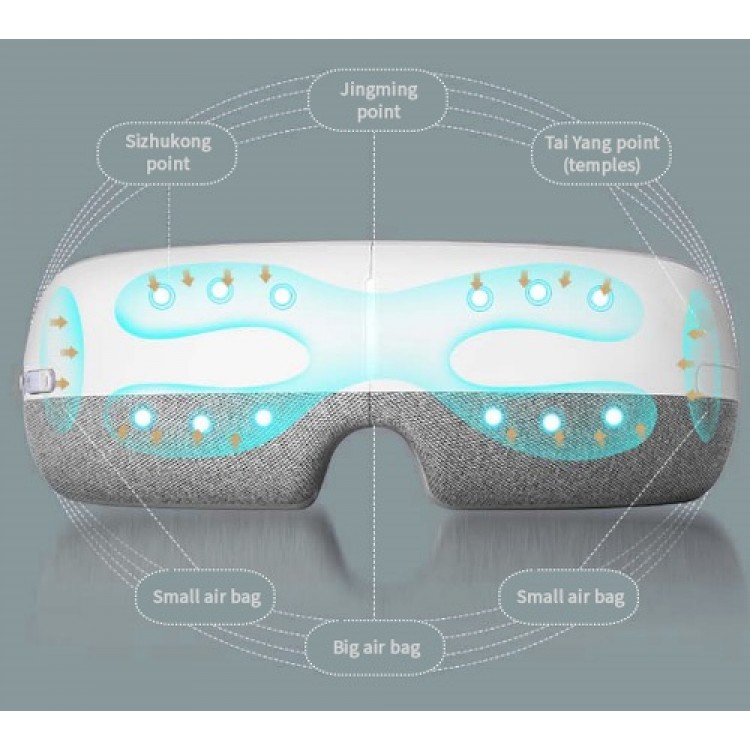 The eye massager offers 5 massage modes combining air pressure massage, heat diffusion and vibration massage: