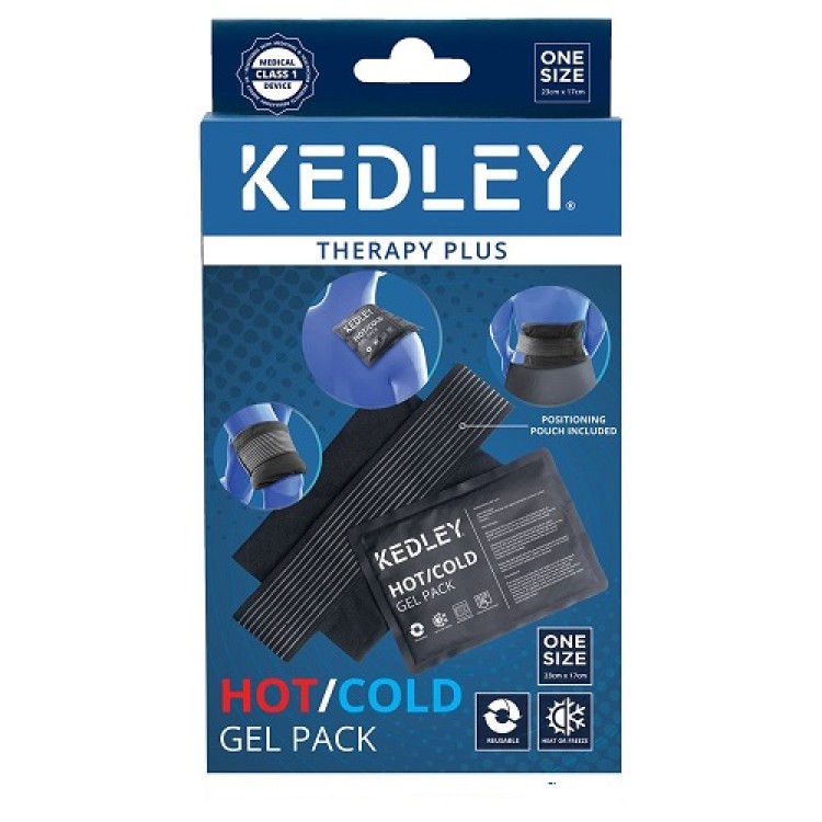 Hot - cold gel pack enables compression for natural pain relief without medication.