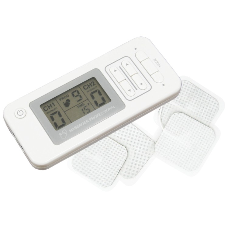 Pocket TENS with 9 programmes and 2 channels. 9 adjustable intensities.